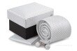 ELROY 5 dílná sada pánské hedvábné kravaty,manžetových knofl íčků a kapesníčku.Materiál: PES hedvábí.Rozměry kravaty: šířka ve spodní části cca 7,5 cm, délka cca 150 cm.Kapesníček 19,5 x 19,5 cm, knofl íčky o průměru cca 1,5 cm. V luxusní dárkové a zároveň úložné krabičce,jejíž víko je potaženo stejným materiálem,z jakého je vyrobena kravata. TOP...