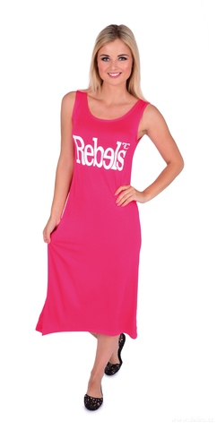 REBELS, dlouhé šaty se širšími ramínky s módním nápisem REBELS.Velmi příjemný materiál díky vysokému podílu bavlny (65%)a PES (35%). Univerzální velikost (odpovídá velkosti M/L, XL, XXL).Volnější střih pro každou postavu. Materiál šatů je velmi pružnýa snadno se přizpůsobí každé postavě.