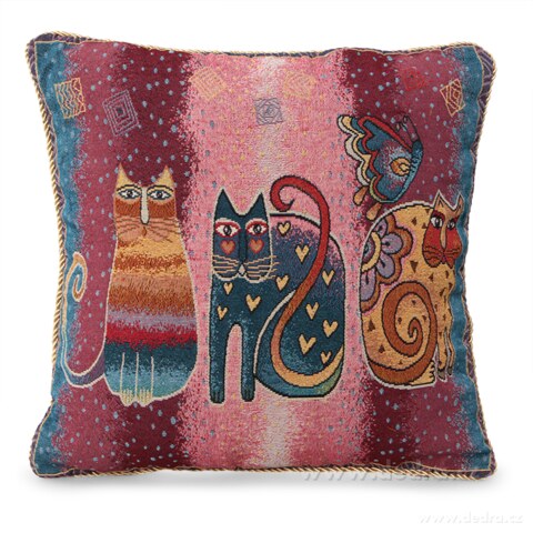 GOBELINO potahy na polštář• z vysokogramážního TKANÉHO žakáru = nejedná se levný potisk, k terý by se po 2- 3 praních sepral• každý motiv kombinuje různé výtvarné techniky (malba, kresba, celoplocha, koláže…) – výsledný efektje vždy dokonalý a stane se ozdobou interiéru• celý polštář je lemovaný OZDOBNOU provazovou PASPULKOU• oboustranný motiv na p...