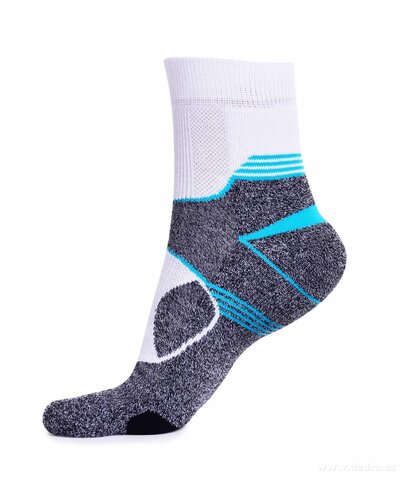 FUNKČNÍ SPORTOVNÍ PONOŽKY s vláknem CoolMax®. Obzvlášť elastické a zesílené v oblastech velkého zatížení chodidla. Materiál 40% Coolmax®, 40% bavlna, 17% NY, 3% elastan. Velikost 42-46 cm.CoolMax® je speciální funkční čtyřkanálkové vlákno které je vodoodpudivé a nenasákavé a velmi rychle odvádí tělesnou vlhkost od pokožky. Termoregulační účinek nap...