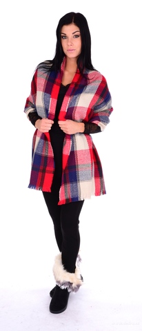 Pléd z jemného úpletu s třásněmi, lze používat jako přehoz přes ramena nebo větší šál kolem krku.