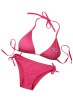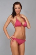 Trojúhelníkové bikiny bez výztuže. Podprsenka se zavazováním vzadu a za krkem umožňuje nastavení Vaší velikosti. Podprsenka je bez výztuže a celopodšitá. Kalhotky se zavazováním na bocích umožňují nastavení Vaší velikosti, přední část je celopodšitá. Univerzální velikost (odpovídá XS, S, M, L).