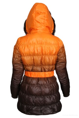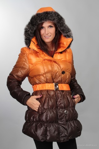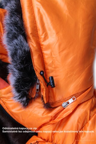 Prošívaný kabát. Plyšová podšívka ve vnitřní části bundy a ve vnitřní části kapuce. Odnímatelná kapuce na zip. Samostatně lez odepnout celou kapuci nebo jen kožešinový lem kapuce. Bundu tedy můžete měnit na 3 různé způsoby a aktuálně podle počasí. Žíhané barvy zeštíhlí vaši siluetu. Vnitřní výplň: duté vlákno. Materiál: 100% polyester. Délka ve velikosti M: cca 77 cm (»3 cm) Ve velikostech