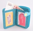 Jedna část na zip obsahuje dvě přihrádky na bankovky nebo drobné mince, druhá část s uzavíráním na patent obsahuje velkou kapsu na papírové bankovky a 2 průhledné přihrádky např. na občanský průkaz či karty.