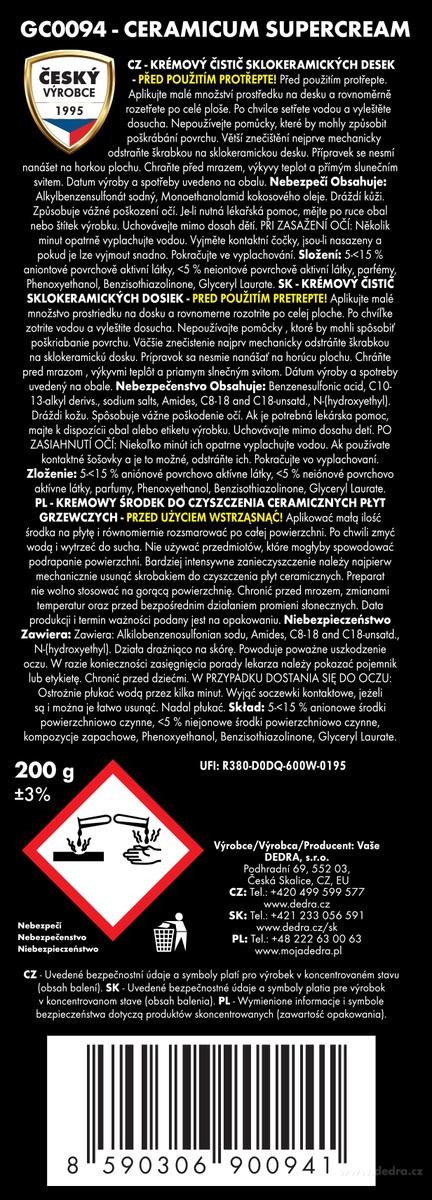 CERAMICUM 2v1 supercream, superkrém na sklokeramické a indukční desky, 200 ml.