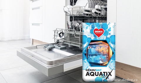 AQUATIX® GRANULATED SALT je regenerační sůl do myčky nádobí s extra velkými granulemi, která zajišťuje změkčení vody a pomáhá předcházet usazování vodního kamene. Je nezbytnou součástí každého cyklu mytí – chrání myčku, prodlužuje její životnost a zvyšuje účinnost tablet nebo prášku.