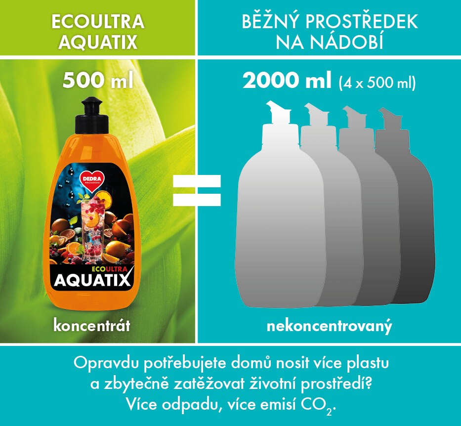 Díky menšímu plastovému obalu našeho koncentrátu šetříš životní prostředí při zpracování odpadních plastů. Ušetříš peníze za zbytečné nadměrné plastové obaly ředěných prostředků a jejich přepravu do supermarketu.