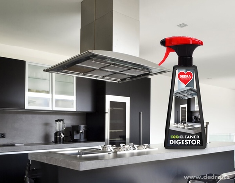 EKO čistič digestoří CLEANER DIGESTOR je vysoce koncentrovaný přípravek vyvinutý pro účinné odstranění mastnoty a kuchyňských nečistot z povrchů odsavačů par, digestoří i jejich okolí. Díky přírodnímu složení s rostlinnými tenzidy si poradí i s připečenou mastnotou, a přitom je šetrný k čištěnému povrchu.