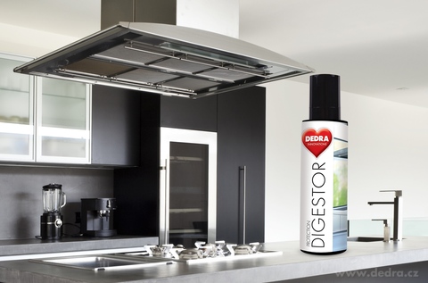 Ochrana digestoře s impregnační složkou - vytvoří ochranný film, který chrání povrch před dalším usazováním mastnoty a nečistot.