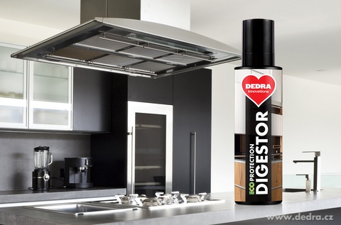ECO PROTECTION DIGESTOR SPRAY 200 ml je ekologický impregnační sprej vyvinutý speciálně pro ochranu povrchů digestoří a odsavačů par. Díky moderní receptuře vytvoří na povrchu jemný ochranný film, který zamezuje usazování mastnoty a nečistot. Tento film působí jako bariéra, na které se nečistoty drží méně, a následné čištění je mnohem rychlejší a efektivnější.