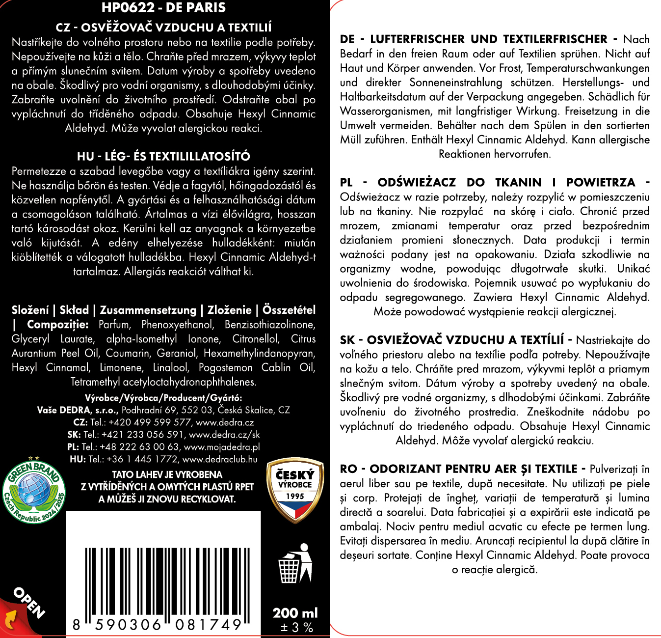 Luxusní osvěžovač vzduchu a textilií PARFUMIA® s prémiovým parfémem. Provoní ručníky, závěsy i oblečení jemnou a dlouhotrvající vůní. Elegantní sprej s univerzálním použitím pro každodenní osvěžení domova. Objem 200 ml.