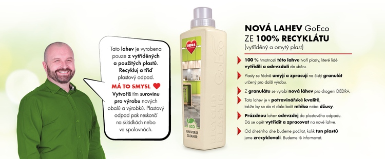 Toto je BUDOUCNOST! Jsme velmi hrdí na to, že zavádíme novou lahev GoEco ze 100% recyklátu.