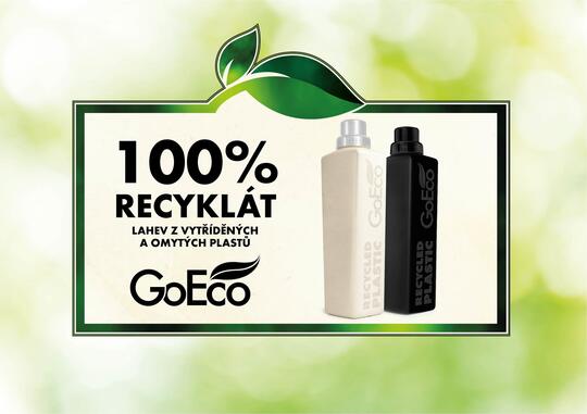 GoEco láhev je obal vyrobený z použitého plastu, který prošel tříděním, drcením a pečlivým mytím. Díky tomu splňuje přísné požadavky na kvalitu a bezpečnost a může se znovu používat v kosmetice i drogerii.