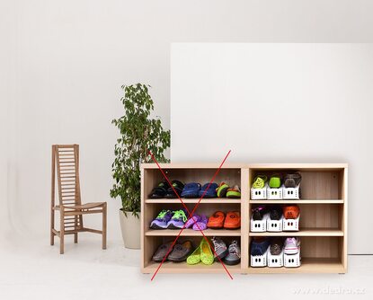 - s jeho pomocí dáte jeden pár bot nad sebe a tím získáte více místa v botníku