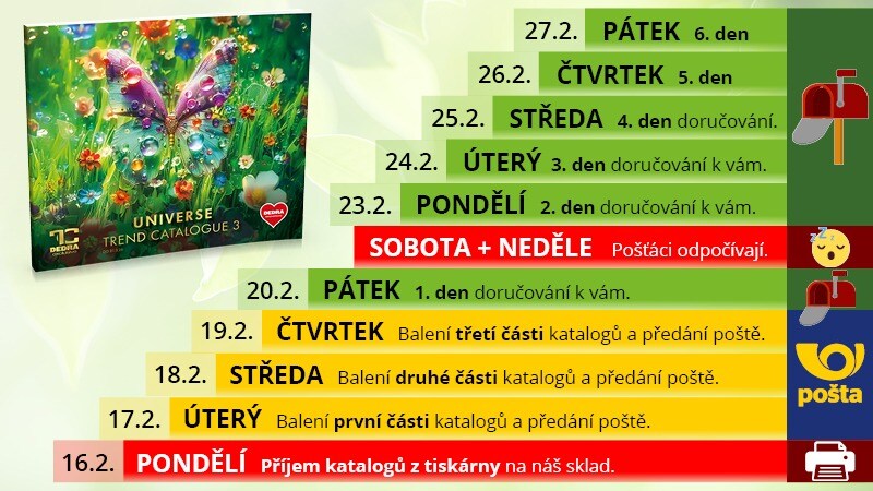 Od úterý 17.1. byly tedy katalogy postupně podávány a následně rozesílány prostřednictvím České a Slovenské pošty. Katalog ZDARMA posíláme zákazníkům, kteří měli alespoň jednu objednávku v období od 1.1.2026 do 7.2.2026.