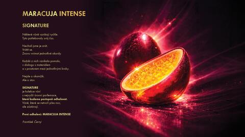 V katalogu představujeme novou řadu SIGNATURE, vůni s nejvyšší úrovní parfemace. Jako první odhalujeme MARACUJA INTENSE, vůni založenou na hloubce