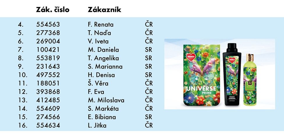 4. až 16. pozice získá.......balíček se 3 výrobky s parfemací MAGIC GARDEN v hodnotě 787 Kč/34,07 €.