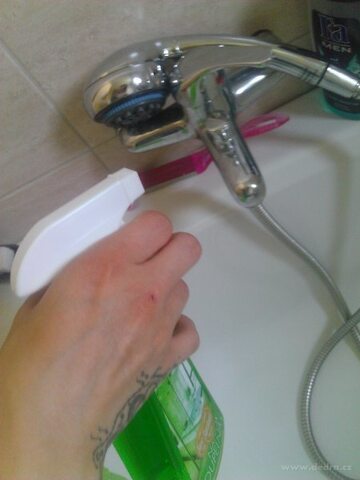 Čistič na vodní kámen a šedý povlak od vodního kamene v koupelně. Perfektně vyčistí jakýkoliv obklad nebo skleněnou plochu v koupelně, která je v kontaktu s vodou a usazuje se na ní vodní kámen.