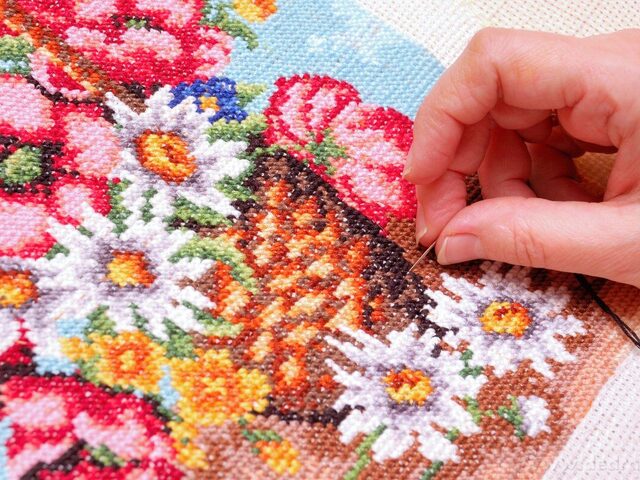 Potřeby na pletení, šití a malování.