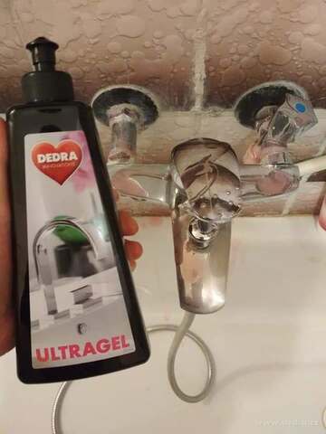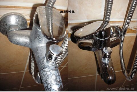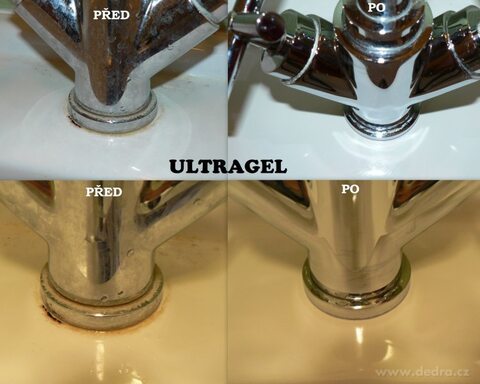 Bleskový a silný odstraňovač na rez a vodní kámen. Pokud potřebuješ skutečně mimořádně silný prostředek na rez a vodní kámen, pak je ULTRAGEL tou nejlepší možnou volbou. Je to skutečný ULTRA GEL. Odstraní i krusty vodního kamene a rezavé skvrny z kapající baterie.