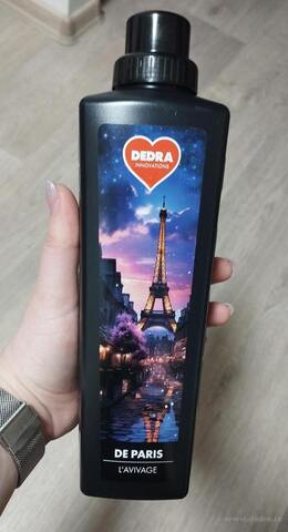 Aviváž změkčuje prádlo, omezuje mačkání a usnadňuje žehlení. Eliminuje elektrostatický náboj a zajišťuje dlouhotrvající vůni. Obsahuje Aloe vera a Elastil® ME pro maximální hebkost. S elegantní pudrově-dřevitou parfemací DE PARIS s tóny růže, fialky, cedru, pačule a mošusu.