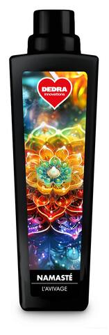 Aviváž změkčuje prádlo, omezuje mačkání a usnadňuje žehlení. Eliminuje elektrostatický náboj a zajišťuje dlouhotrvající vůni. Obsahuje Aloe vera a Elastil® ME pro maximální hebkost. S meditační vůní NAMASTÉ s tóny růže, jasmínu, citronu, zeleného jablka, tonky a cedrového dřeva.