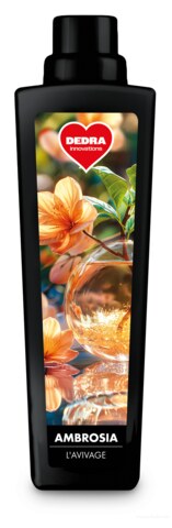 Aviváž změkčuje prádlo, usnadňuje žehlení a eliminuje elektrostatický náboj. Díky Aloe vera a Elastil® ME je prádlo hebké a dlouho provoněné. S opojnou květinovou parfemací AMBROSIA s tóny jasmínu, broskve, růže, karafiátu, ylang-ylangu, ambry, mošusu a santalového dřeva.