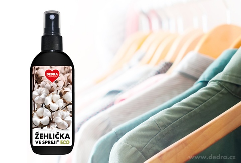 ECO žehlička ve spreji® WHITE COTTON – ideální pomocník na cesty i doma. Vyrovnává sklady a záhyby bez klasického žehlení. Stačí nastříkat, vyhladit rukama a případně profouknout fénem. Bez dráždivých látek, vhodná i na citlivé materiály. Rychlé řešení bez žehličky.