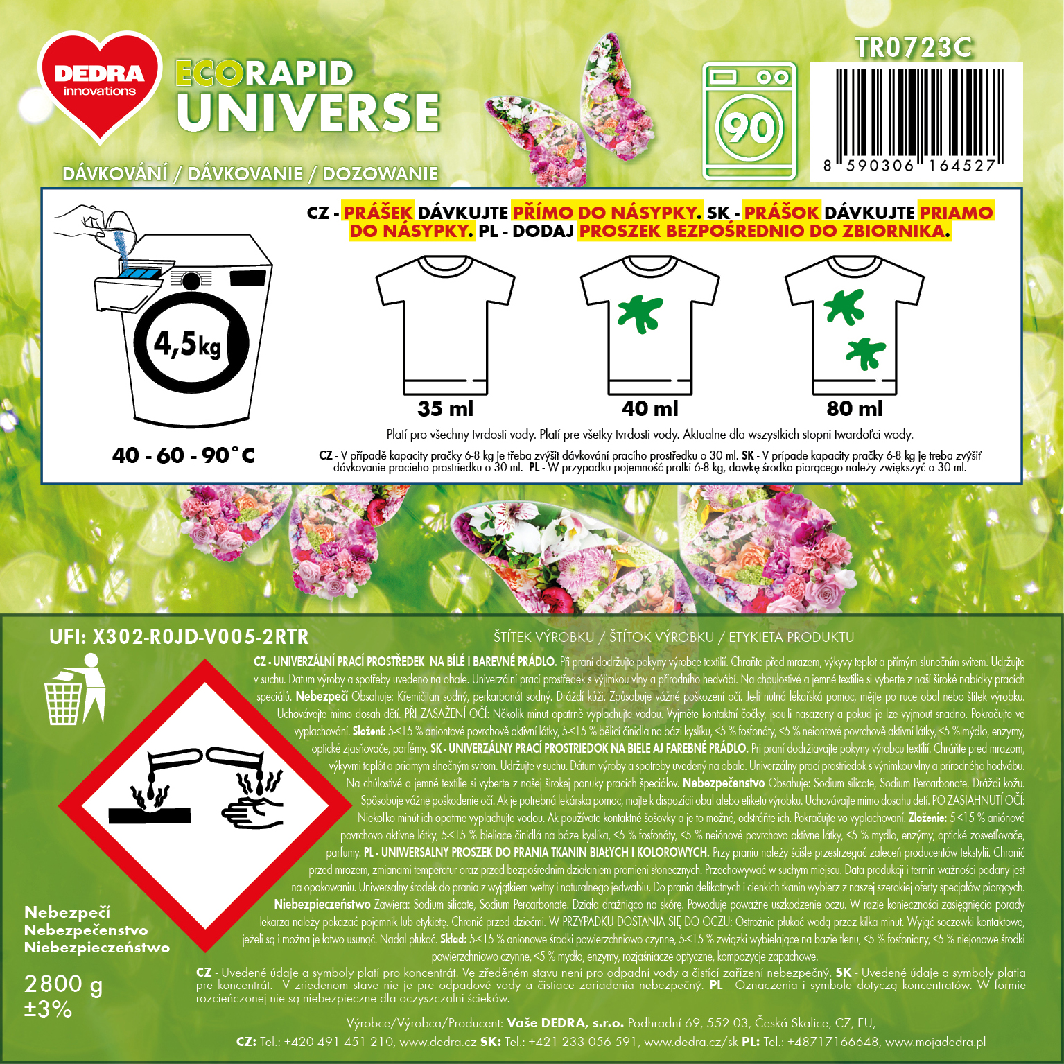 SADA: ECORAPID UNIVERSE prášek na bílé i barevné prádlo 2800 g = 90 praní + ZDARMA doplňovací smaltovaná kovová DÓZA v hodnotě 299 Kč/12,99 € (o rozměru: š 15,5 x h 15,5 x v 22 cm).