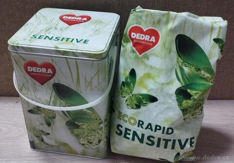 Sada ECORAPID SENSITIVE prášek pro citlivou pleť 2800 g = 90 praní + ZDARMA doplňovací smaltovaná kovová DÓZA v hodnotě 299 Kč/11,99 € (o rozměru: š 17,5 x h 17,5 x v 25,5 cm).
