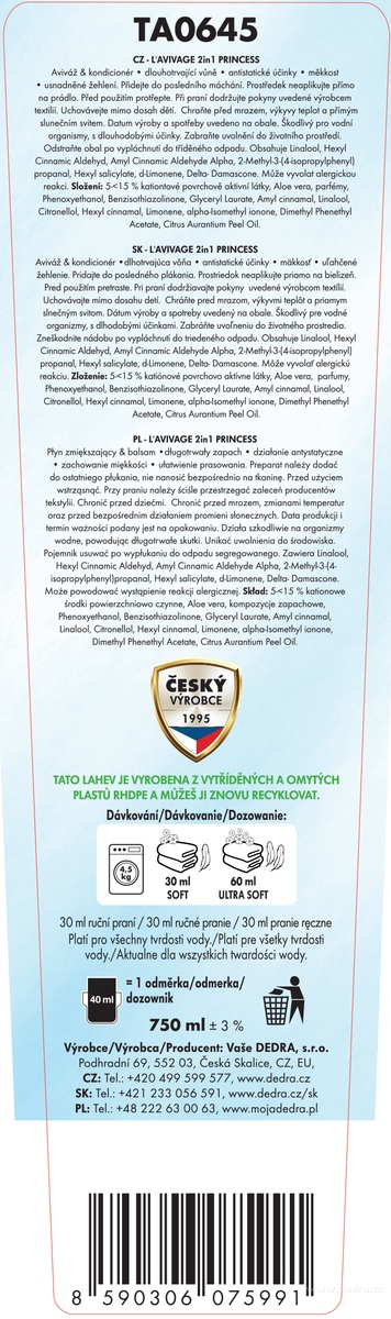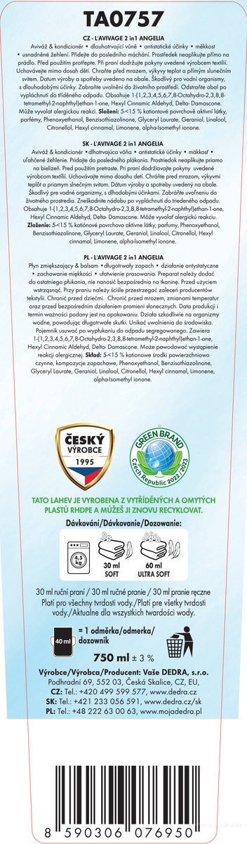 Výrobce: Vaše Dedra s. r. o., Podhradní 69, Česká Skalice, Česká republika