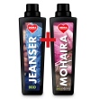 Sada 1+1 EKO pracích gelů obsahuje: 1 x speciální tekutý EKO prací prostředek na džínové oblečení JEANSER® ECOSENSITIVE 15 praní + 1 x EKO prací gel na jemné, pletené a kašmírové prádlo MOHAIRA ECOSENSITIVE 15 praní.