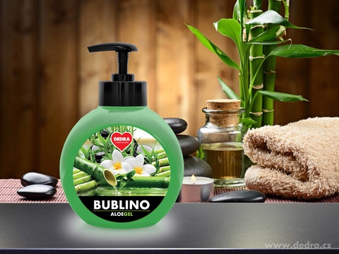 BUBLINO ALOEGEL 500 ml tekuté mýdlo s hydratační složkou a vysokým obsahem ALOE VERA ti zajistí pocit hebké a vláčné pokožky bez parabenů.
