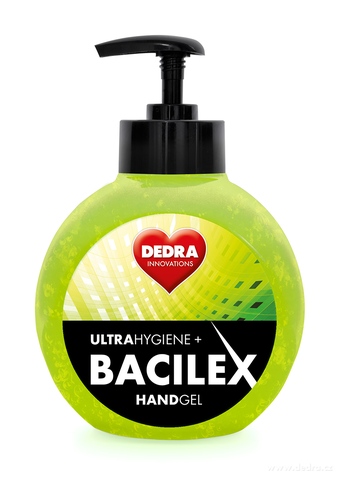 Čisticí gel na ruce HANDGEL BACILEX® ULTRAHYGIENE+ obsahuje 65 % alkoholu, 500 ml, s OVOCNOU parfemací: ovocná, tropická, mango, zelená