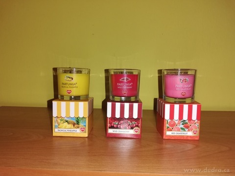 Sada obsahuje 3 x 55 ml sojová vonná EKO svíčka PARFUMIA®: