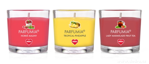 Sada obsahuje 3 x 55 ml sojová vonná EKO svíčka PARFUMIA®: