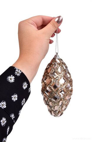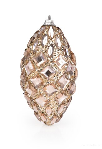 3 ks ozdobných šišek bohatě zdobených flitry a kamínky v platinové barvě, průměr cca 5,5 cm, výška 11 cm.