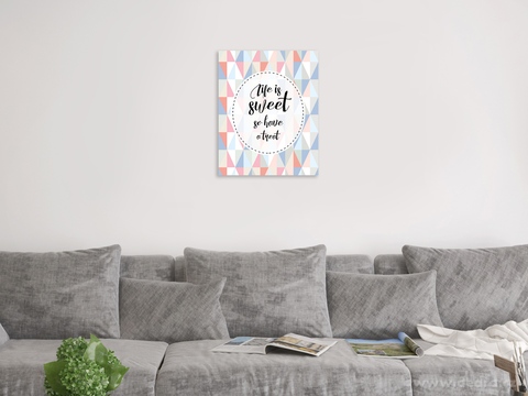 Obraz na plátně s nápisem LIFE IS SWEET o rozměru 40 x 50 cm.