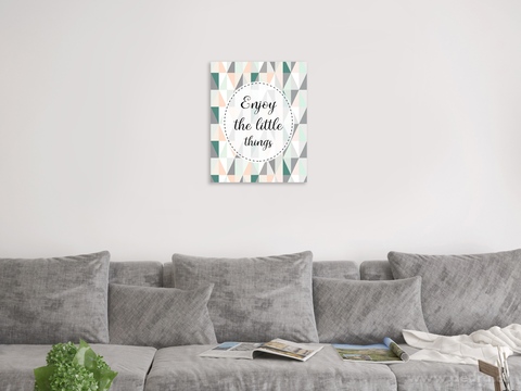 Obraz na plátně s nápisem ENJOY THE LITTLE THINGS o rozměru 40 x 50 cm.