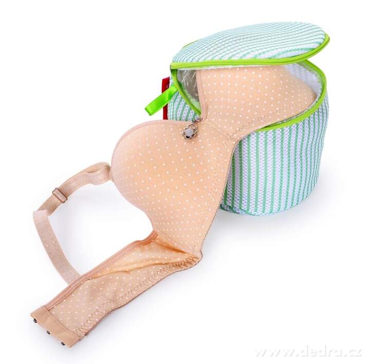 Košíček na praní podprsenek a jemného prádla na zip s výztuhou v dolní a vrchní části. Odolná sendvičová síťovina, průměr 16 cm x v 16 cm.