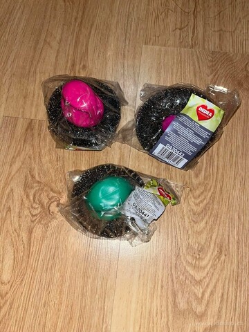 Kovová drátěnka s praktickým plastovým držadlem pro pohodlné čištění připálenin, mastnoty a hrubých nečistot. Vyměnitelná náplň. Průměr 10 cm. Výška 6,5 cm.