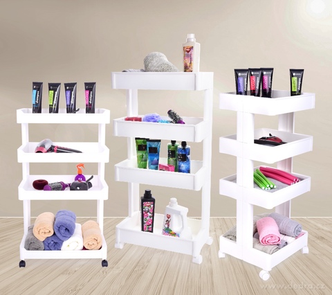 Pojízdný regál ROBUSTON 4patrový o výšce 92 cm. Robustní plastový vozík na kolečkách pro domácnost, kancelář i salon. Snadná manipulace, odolný materiál a univerzální využití.
