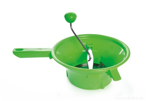 Pasírovací cedník na omáčky, ovocné a zeleninové šťávy. Obsahuje 3 vyměnitelné pasírovací disky (průměr 13,5 cm) s různě velkými otvory.