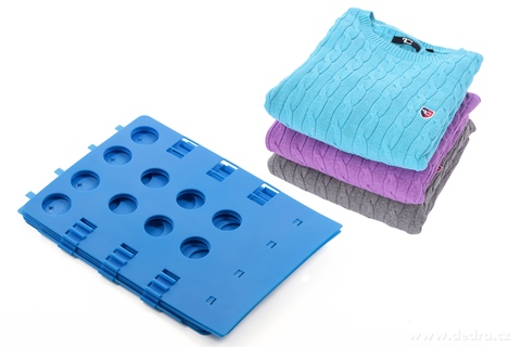 TEXTILO-SKLÁDAČ je chytrá pomůcka pro rychlé a perfektní skládání triček, košil, svetrů nebo ručníků. Nabízí 3 výškové stupně podle tloušťky textilu. Ušetří čas i místo ve skříni, prádlo bude vždy složené jako z obchodu. Rozměry složený 23,5×31 cm.