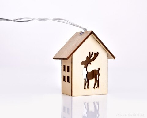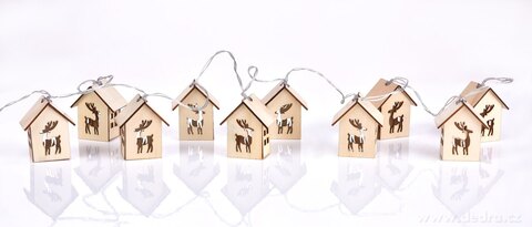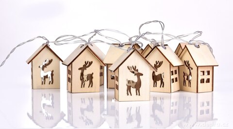 LED svítící řetěz s 10 vyřezávanými domečky.