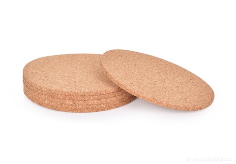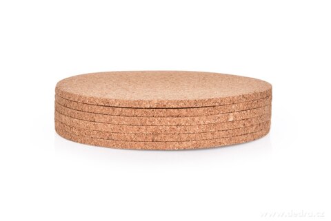 Sada 6 korkových podtácků (9,5 cm) ochrání stůl před skvrnami, poškrábáním a teplem od hrnků či skleniček. Lehké, přírodní a stylové – ideální pro každodenní použití.