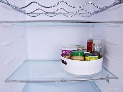 Otočný organizér o průměru 23 cm s protiskluzovou úložnou plochou. Praktický do kuchyně, lednice, koupelny i spíže – díky otáčení o 360° máte vše snadno po ruce.