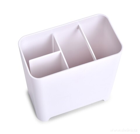Stojan/odkapávač DRENAGE (16 × 8,5 × 18 cm) na příbory a kuchyňské náčiní s otočným odtokovým žlábkem odvádí přebytečnou vodu přímo do dřezu. Lze využít jako stojan i odkapávač. Pevný plast, kompaktní rozměry – ideální k dřezu.