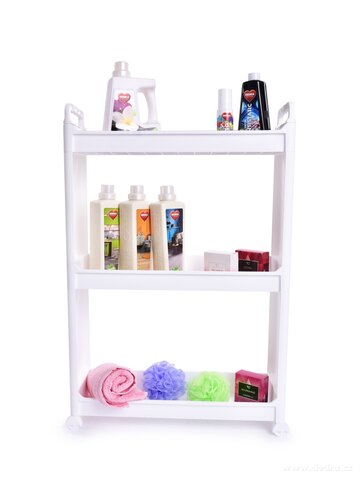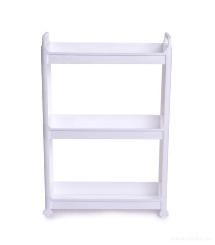 Úzký 3patrový regál na kolečkách o šíři 17 cm ideální do hluchých míst vedle linky, pračky či WC. Snadno vysouvací, poskytuje další úložný prostor na čistící prostředky, kořenky nebo toaletní papír.