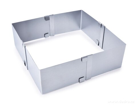 Nastavitelná čtvercová forma CREMO z nerezové oceli, rozměr 9–15 cm. Ideální na dorty, koláče, buchty i slané nákypy. Odolná konstrukce, snadné nastavení a jednoduchá údržba.